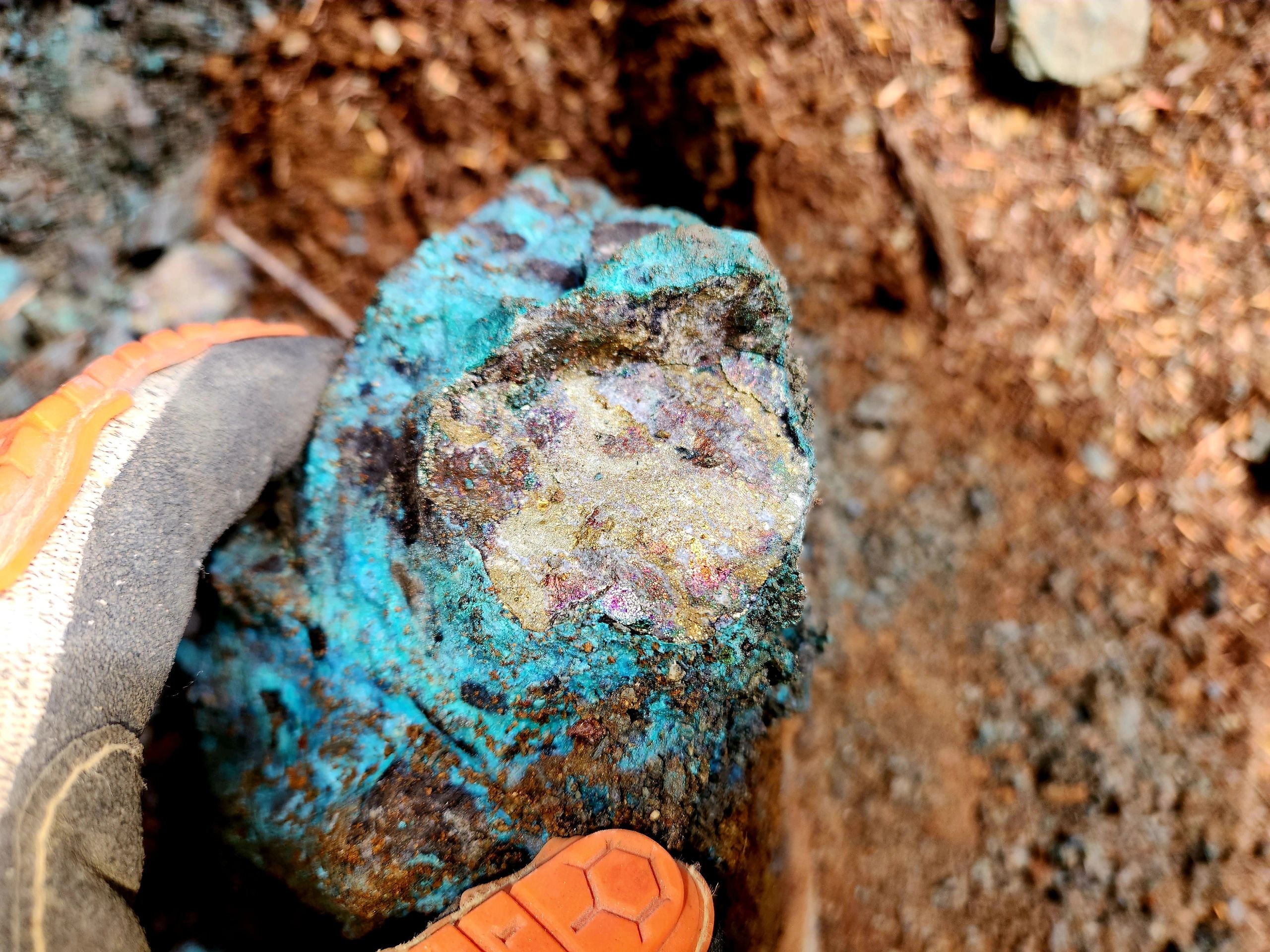 - In 1999 a grab sample of dump material assayed 10.2% copper and 57g/ton gold.