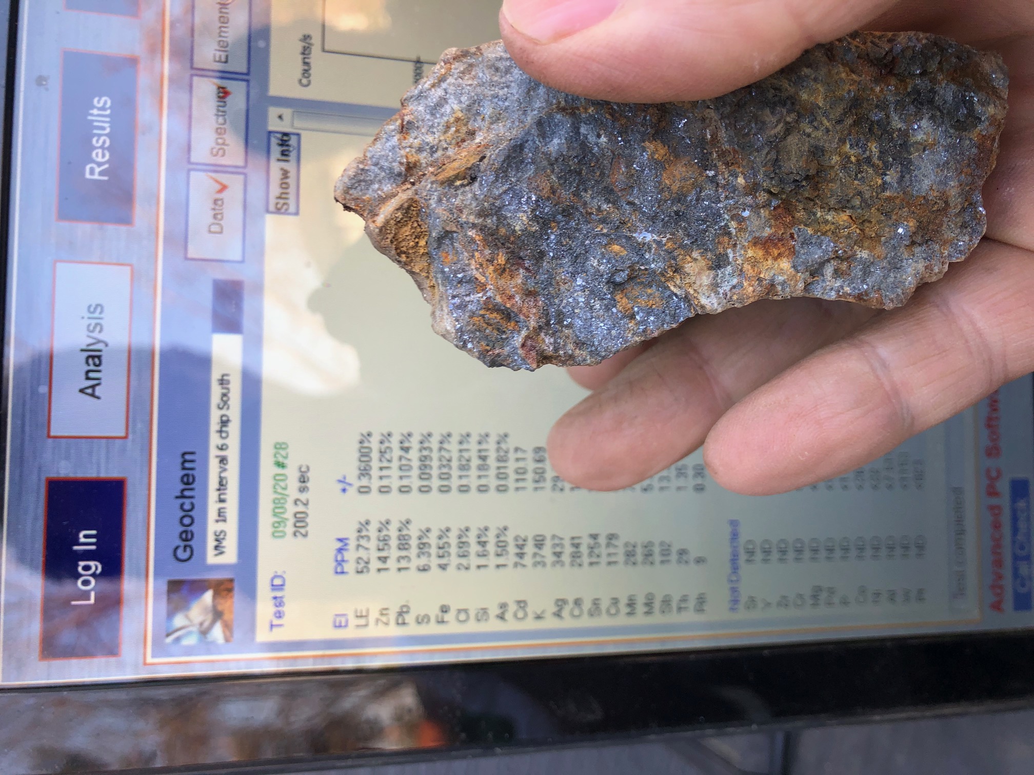 - New camp showing assayed 21% Zn, 2% Pb, 35g/ton Ag and 0.6g/ton Au.