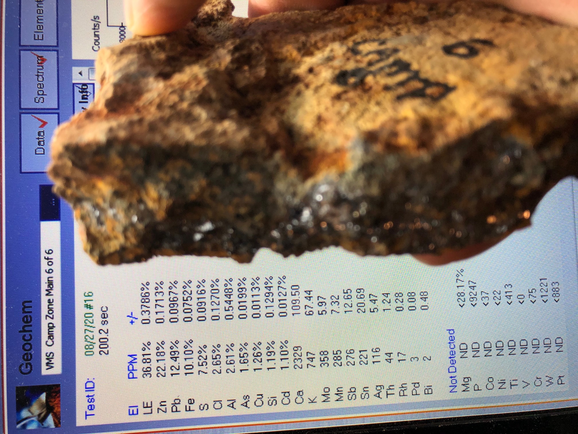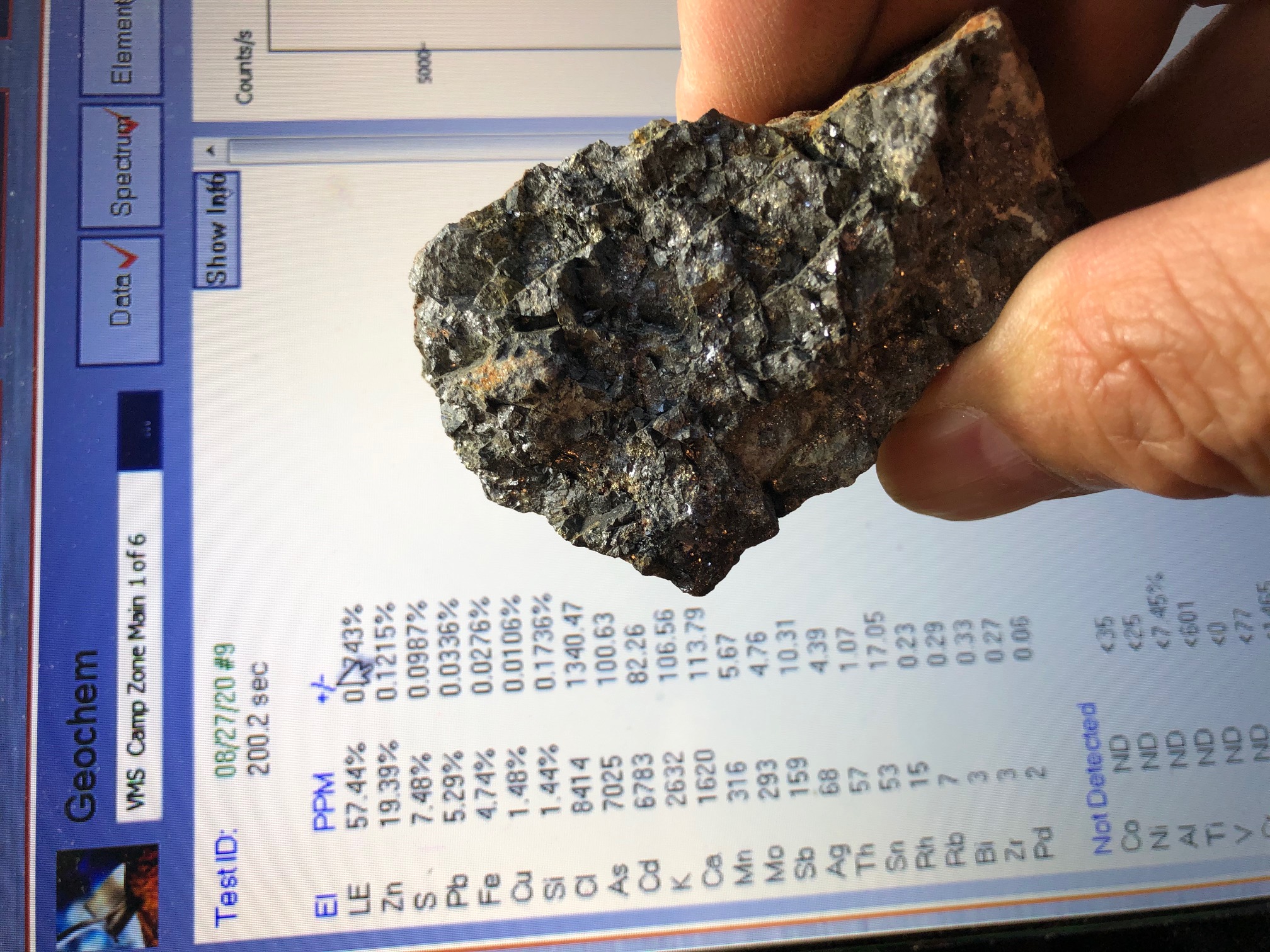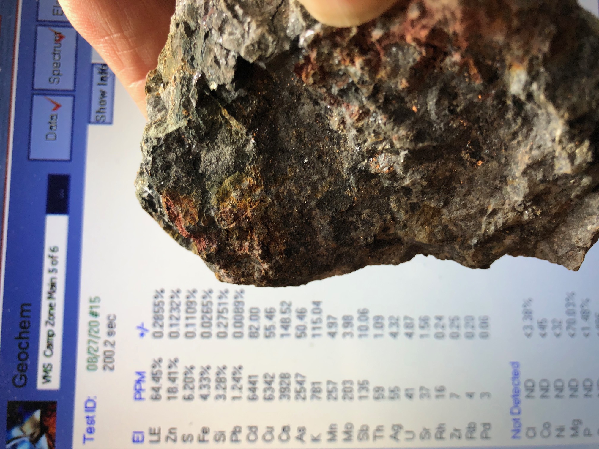 - The Camp has had assays of over 40% zinc. The Copper showing has samples with XRFs over 20% copper including independent assays at 8g/ton gold.