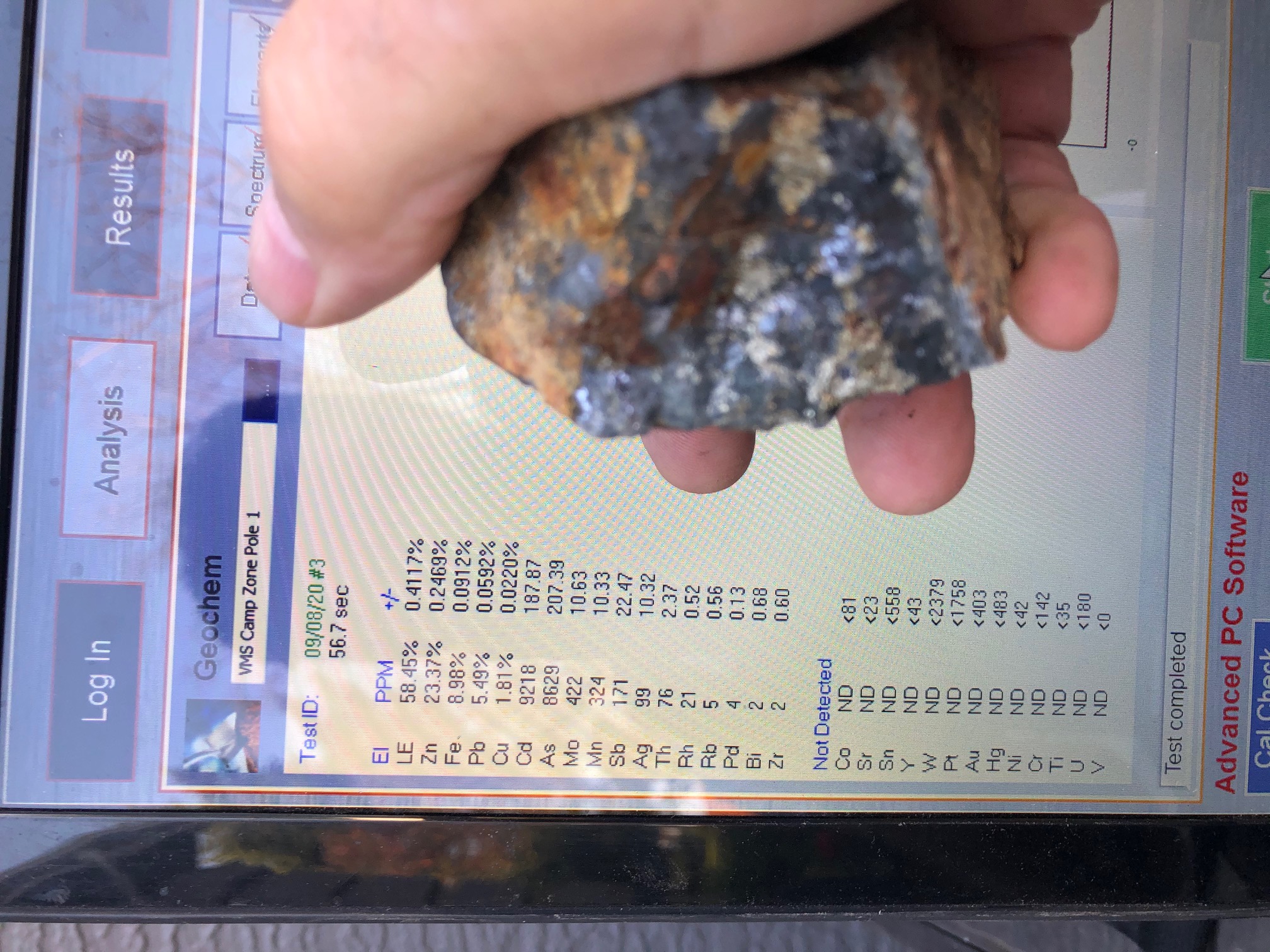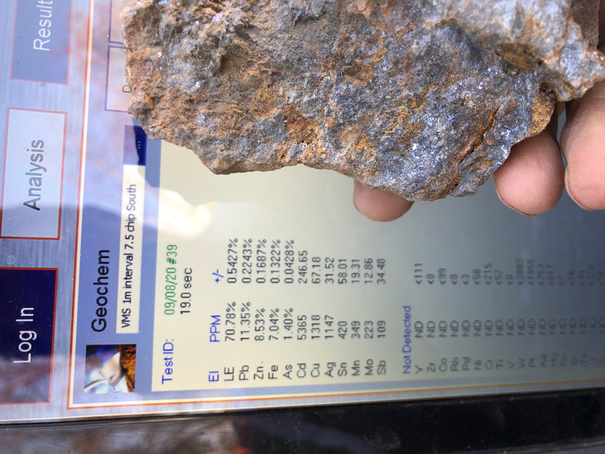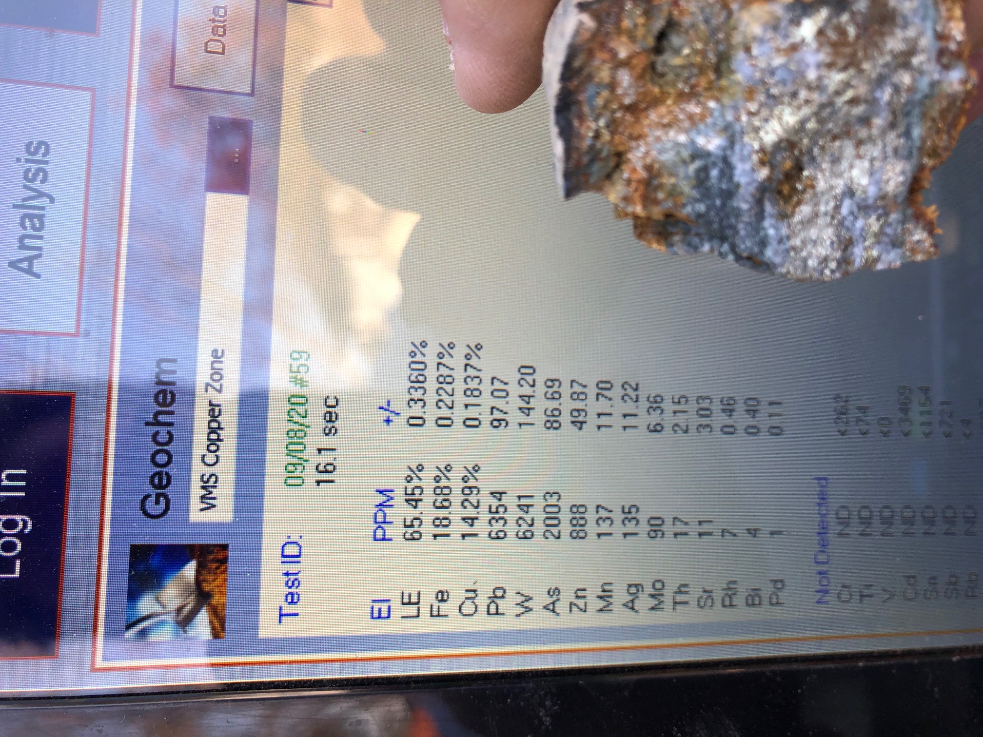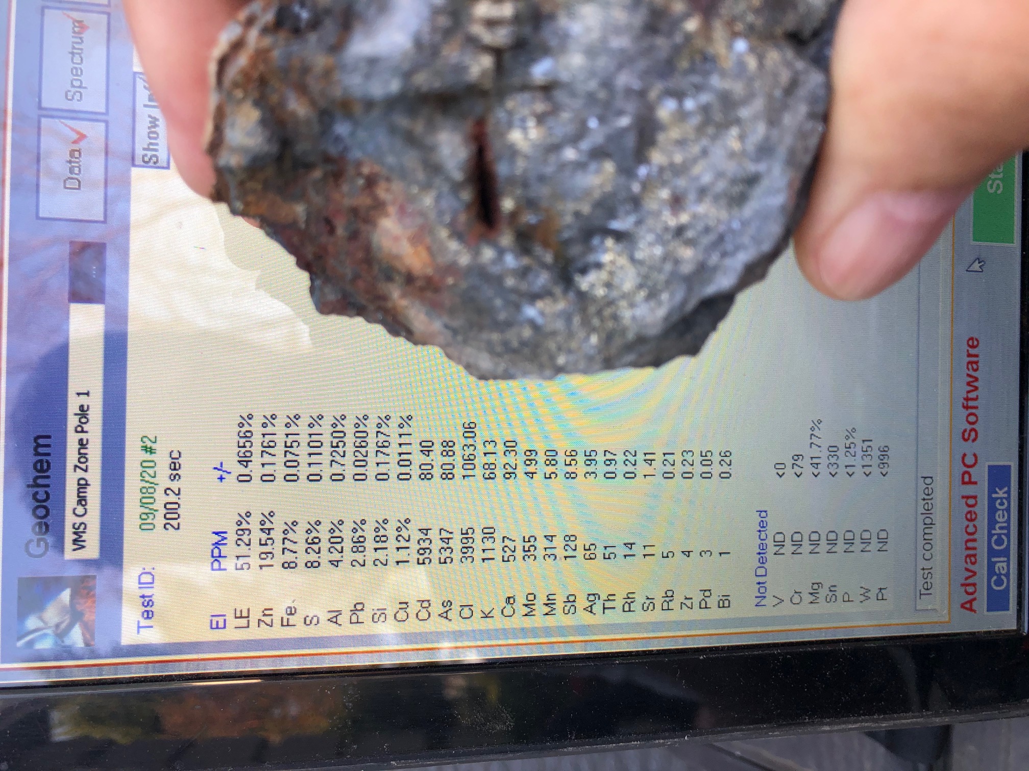 - The Camp has had assays of over 40% zinc. The Copper showing has samples with XRFs over 20% copper including independent assays at 8g/ton gold.